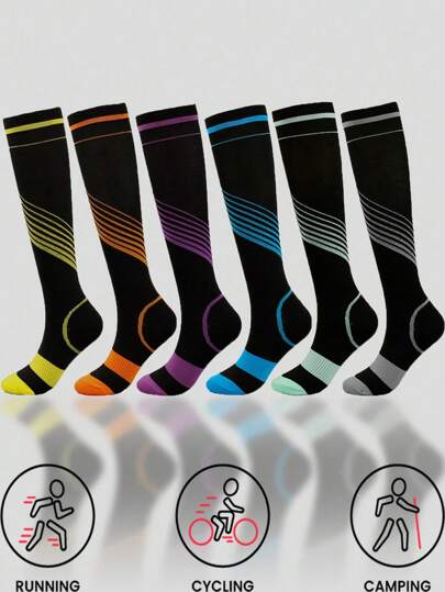 Calcetines de compresión a rayas unisex, adecuados para correr, ciclismo, senderismo y profesiones de larga jornada - Multicolor - Añade 6