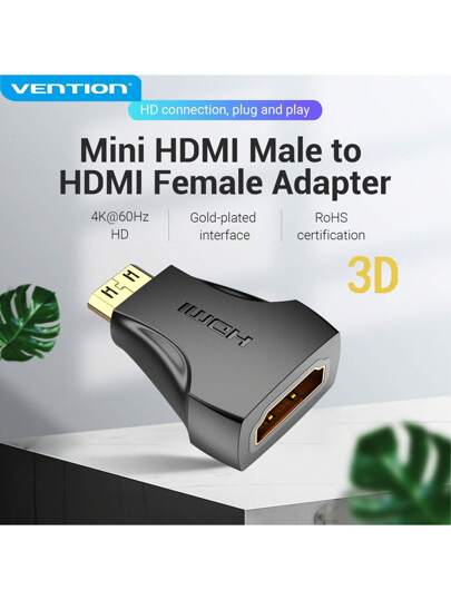 Adaptador mini VENTION 4K Mini Macho a Hembra Estándar, Conversor que soporta 4K@30Hz para portátil, cámara, pantalla, TV - Negro - Añade 1