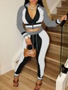 Conjunto de dos piezas de estilo casual y deportivo para mujer talla grande - blazer de manga larga con rayas laterales y pantalones. Material: poliéster, lavable a máquina, ideal para primavera y otoño.