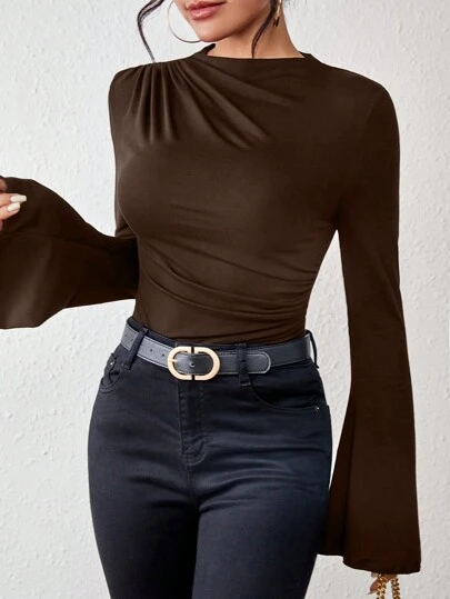 Vavine Camiseta con mangas acampanadas y pliegues en el frente - Marrón - Añade 5