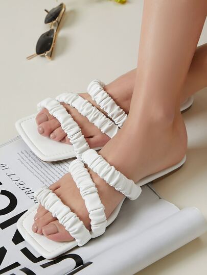 Sandalias fruncido tira de punta cuadrada - Blanco - Añade 2