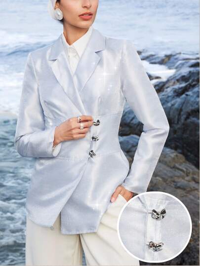 Veilorie Chaqueta blazer casual/de trabajo con decoración de flores de strass para mujer, otoño - Celeste - Añade 1