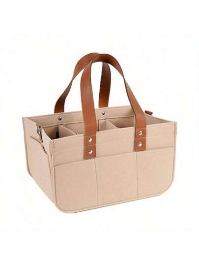 Bolsa de almacenamiento plegable versátil - Organizador multifuncional y portátil con cesta colgante para artículos esenciales del hogar y la oficina - Beis - Añade 6