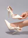 Zapatos de tacón alto con decoración de lazo para mujer, Otoño/Invierno 2025. Sandalias de fiesta elegantes y sexys de punta afilada con tacón extra alto, Elegantes, Tacones para mujer, Elegantes