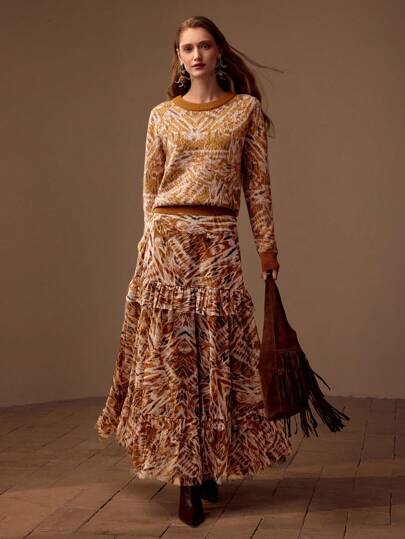 MOTF PREMIUM Jersey de lana con diseño de estampado todo sobre y mangas raglán - Camel - Añade 4