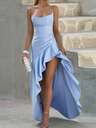 Vestido de satén con abertura y cintura ceñida de unicolor y escote halter, moda navideña para mujer WOWDARK