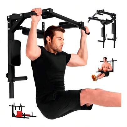 Barra De Ejercicios Pared Barra de Dominadas 8 Ejercicios En 1 Color Negro - Negro - Añade 3