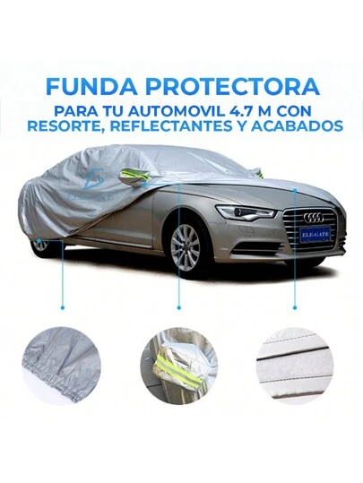 Cubierta Funda Protector Impermeable Con Reflectantes 4.9m PARA CARRO - Plateado - Añade 3