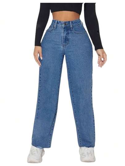 jeans pierna ancha para mujer - azul real - Añade 1