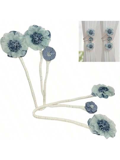 QY- Paquete de 2 hebillas de cortina de flores hechas a mano clips de sujeción para cortina de flores artificiales clips de alzapaños flexibles para cortina decorativos elegantes para sala de estar -6194 - Azul - Añade 3