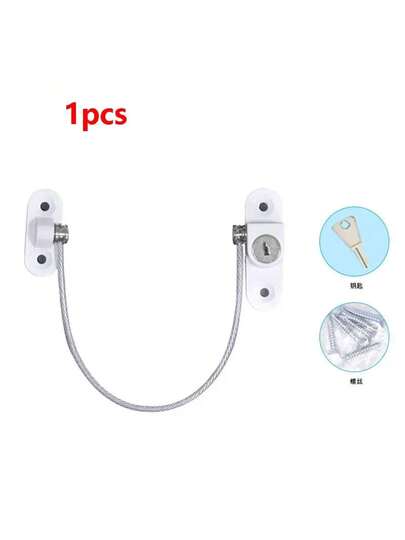 Juego de Restrictor de Cable para Ventana y Puerta, Ventilador, Kits de Bloqueo de Cadena de  de Acero Inoxidable - Blanco - Añade 1