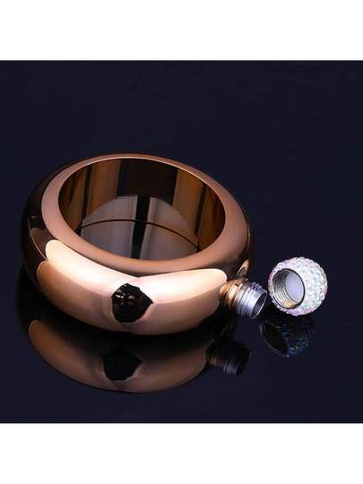 Petaca para Pulsera, 3.5 Oz, Hecha a Mano, con Tapa de Cristal, de Acero Inoxidable, con Forma de Pulsera, Hueca, Redonda, para Cadera, Portátil, para Baile, Cumpleaños, Fiesta,(Oro rosa brillante) - Oro rosa brillante - Añade 2