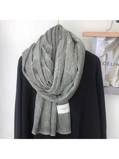 Bufanda de algodón y lino súper suave y lisa para mujeres en otoño e invierno y estilo artístico retro, chal cálido de color sólido - Rosa - Añade 10