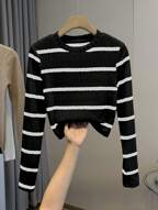 SHEIN EZwear Set de 3 camisetas de manga larga con cuello amplio y ajustadas, en colores negro, blanco y gris, adecuadas para primavera, otoño e invierno