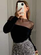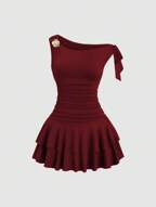 Muchica Vestido corto de punto casual con hombros descubiertos y manga larga para mujer en otoño/invierno