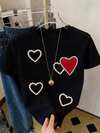 Camiseta de mujer de manga corta con cuello redondo, holgada, casual y versátil. Con estampado moderno, elegante y sofisticado de letras simples, ideal como prenda básica; confeccionada en tela suave con excelente caída