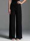 Pantalón de pierna ancha para mujer, casual y elegante. Ligeramente transparente. Sin bolsillos, tela de poliéster, apto para temporadas de primavera y verano. Ajuste de cintura natural con resorte y cordón ajustable. Textura lisa sin estampado. Interior muy suave, fresco y ligero con tu piel.
