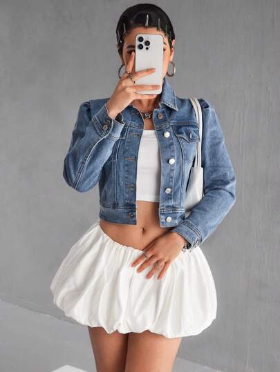 SHEIN EZwear Chaqueta vaquera corta lavada informal para mujer - Azul - Añade 5