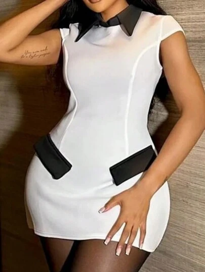 INAWLY Vestido mini ajustado de mujer con bloques de color elegante - Blanco - Añade 1