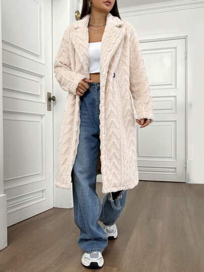 SHEIN Unity Abrigo De Mujer De Lana Larga Con Solapa - Albaricoque - Añade 3