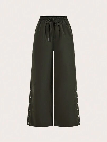Seusyu Pantalones largos simples y lisos para uso diario de mujer - Verde militar - Añade 1