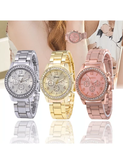 Reloj Dama Geneva Diamante Vintage Diseño Elegante Mujer - Plateado - Añade 3