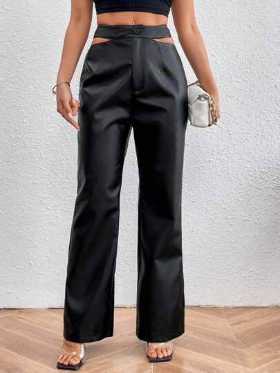 Chiquease Pantalones De Mujer Con Cintura Alta De Un Solo Color Y Corte Recortado - Negro - Añade 6