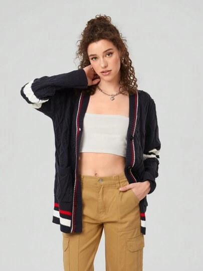 SHEIN EZwear Cárdigan De Rayas De Hombros Caídos Para Mujer - Multicolor - Añade 7
