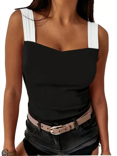 INAWLY Camiseta de tirantes ajustada de verano con contraste de colores para mujer - Multicolor - Añade 1