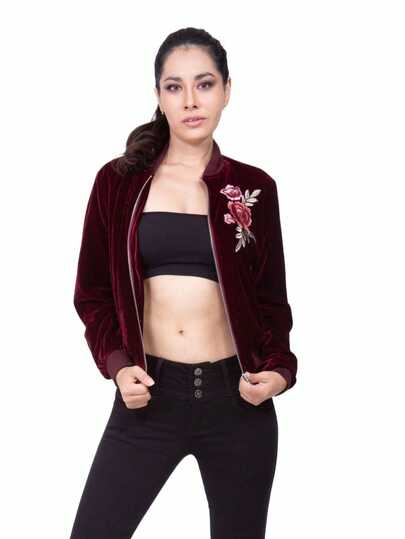Chamarra Chaqueta para Dama de Corte Ajustado con Bordado Blazer de Terciopelo - Burdeos - Añade 1