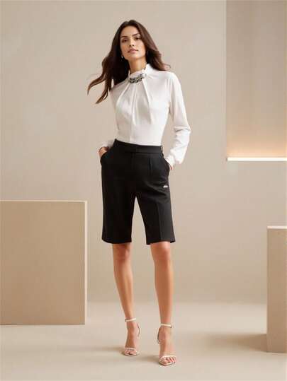 Blusa Cuello Alto Con Mangas Elegante Moderna Versátil Comodidad Formal Diseño Atemporal Cortes Ajustados Diario Trabajo - Blanco - Añade 1