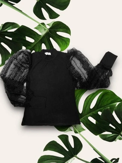 Blusa Manga Larga Abullonada con Olanes y Puntos - Multicolor - Añade 2