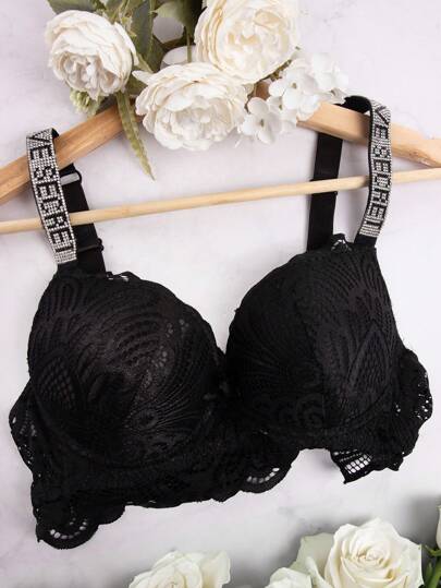 Brasier Push-Up con Pedrería Sexy Ajustable | Sujetador Pushup Cómodo con Brillantes y Soporte - Negro - Añade 1