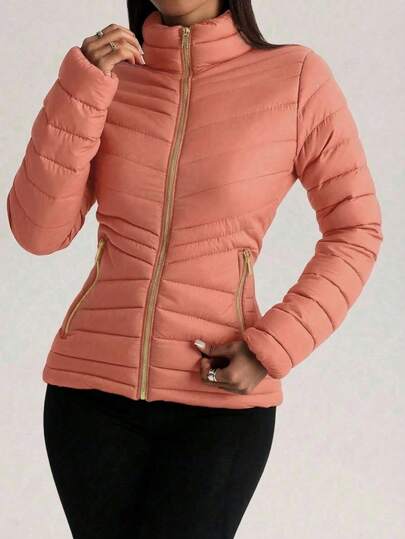Chamarra Capitonada Mujer Resorte Lateral Forro Peluche Fino - Rosa Pálido - Añade 1