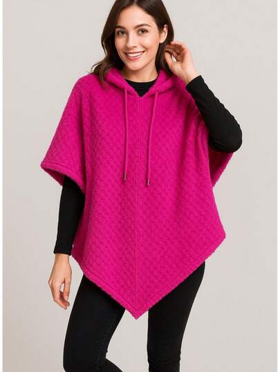Capa peluche graba¡da trencita bonita hermosa mañanita Poncho Capa larga asimétrica informal para mujer con capucha y cordón ajustable de moda para mujer - Rosa Fucsia - Añade 1