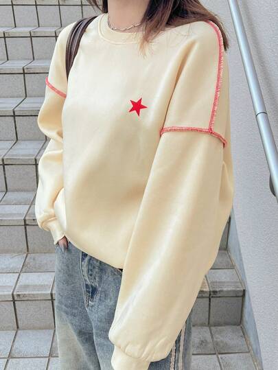 FRIFUL Blusa de manga larga con patrón de líneas de color contrastante, casual y elegante para uso diario, ropa de otoño - Albaricoque - Añade 7