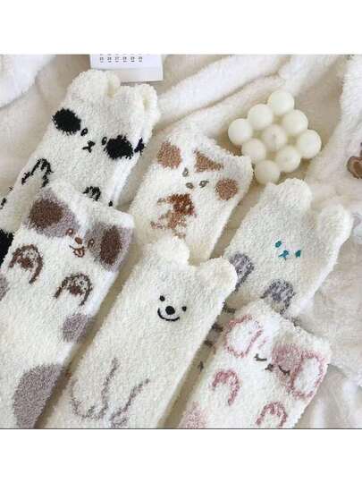6/12 calcetines gruesos y cálidos de felpa coral para mujer, para usar en casa, calcetines de maternidad, talla 35-43, para otoño/invierno - Rosa - Añade 5