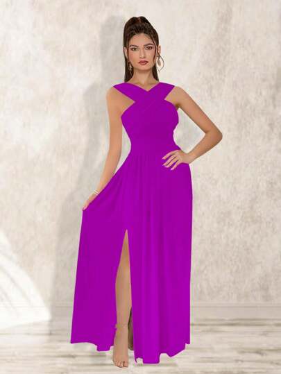 Vestido Largo Cuello Cruzado Y Abertura En Pierna Maria Bela Modelo Mesina - Bugambilia - Añade 1