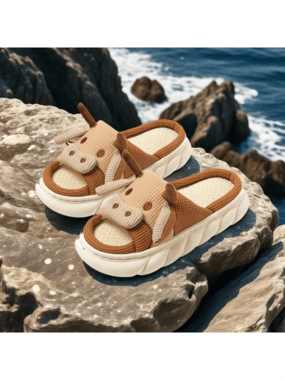 Suave y cómodo de lino para hombres y mujeres zapatillas de vaquero Suela antideslizante engrosada Casa Al aire libre se puede usar - Camel - Añade 3