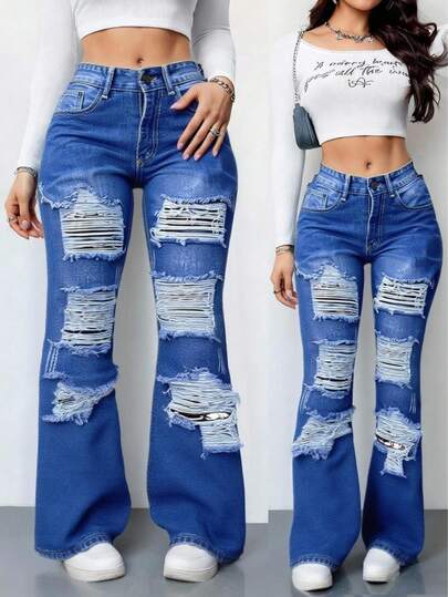 Pantalones vaqueros anchos sueltos y versátiles de mujer con diseño de bolsillos Pantalones De Mujer Mezclilla Anchos Vestir Flojos Casual Cargo De Algodón Acampando En Oferta Baggy Curvy Elegante - Azul Marino - Añade 1