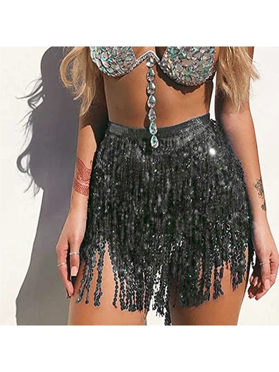 Pareo Bellydance Lentejuelas Danza Falda Fiesta Brilla Playa Fajilla Bellydance Lentejuelas Pareo De Danza Falda Fiesta - Negro - Añade 1