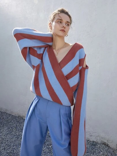 Jersey con patrón de rayas cruzado delantero - Multicolor - Añade 1