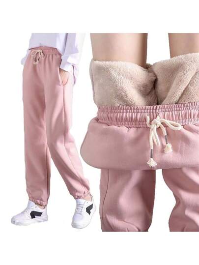 Los pantalones térmicos de las mujeres espesaron los pantalones apretados de las polainas de las mujeres de los pantalones de la cachemira de la piel de cordero del invierno - Rosa - Añade 6
