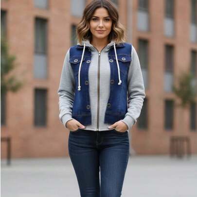 Chamarra Dual Confort Mezclilla Strech Mangas de Algodón - Azul Marino - Añade 3