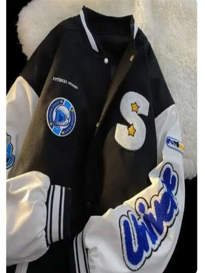 Chaquetas Con Letras Flocadas Para Mujer - Negro - Añade 1