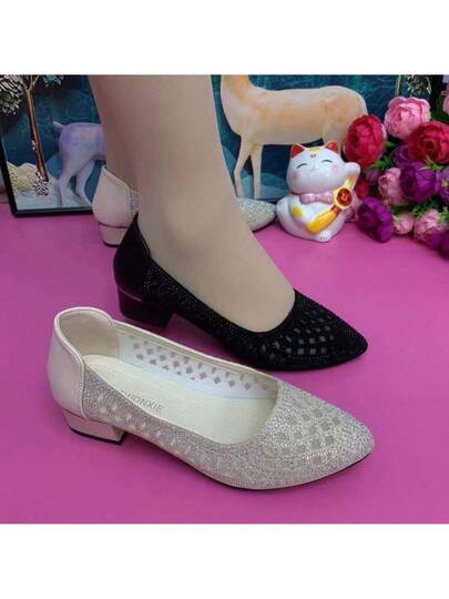 2024 Verano Nuevos Zapatos de Mujer de Malla Hueca Tacón Medio Tacón Grueso Suela Suave Transpirable Cuero Suave Antideslizante Zapatos de Mujer para Mamá - Blanco - Añade 1