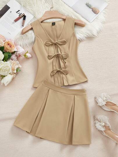 Modelyn Conjunto de dos piezas para mujer para uso diario - Caqui - Añade 2