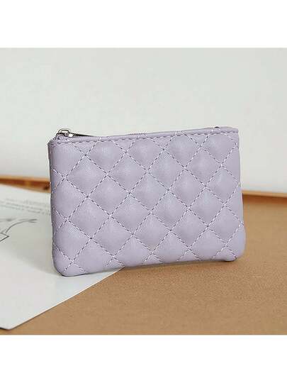 Monedero pequeño para mujeres, billetera de cuero PU con cremallera, bolsa con estampado de cuadros, monederos para cambio, tarjetero, mini monedero para damas - Morado - Añade 10