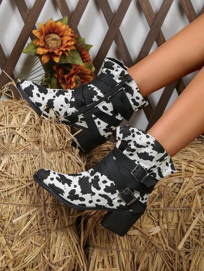 Botas de mujeres de color combinado de moda mitad de la pantorrilla - Blanco y Negro - Añade 1