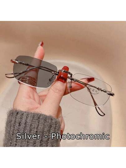 Gafas de Lectura Fotocromáticas Anti Radiación 0 +1.0 +1.5 +2.0 +2.5 +3.0 +3.5 +4.0 Gafas para Mujeres Hombres Gafas Sin Montura - Blanco - Añade 6